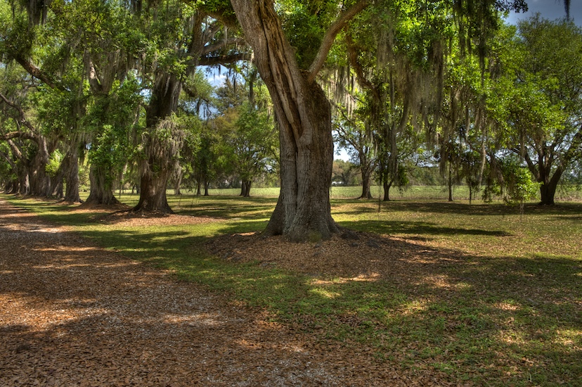 The beautiful oak alley leading to the site of the sugar factory and the slave cabins was reputedly planted during the Civil War by a black woman, although her name is lost to history.