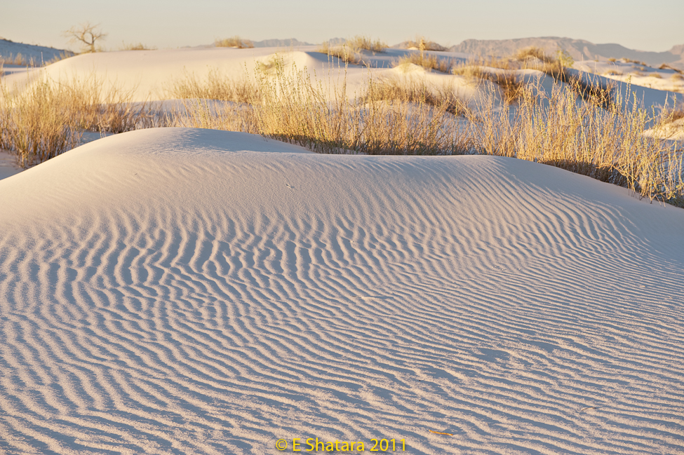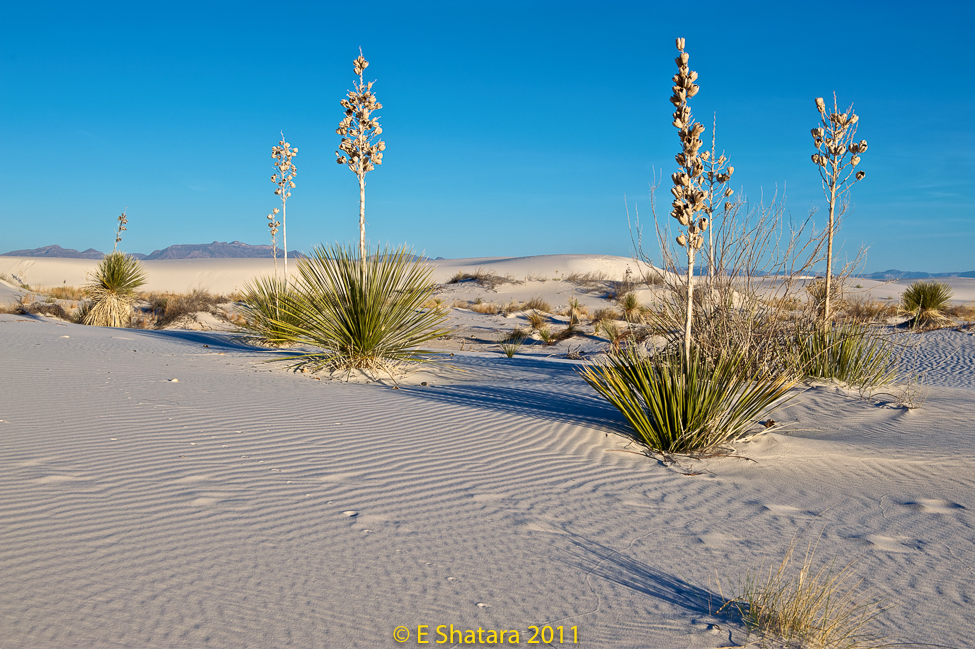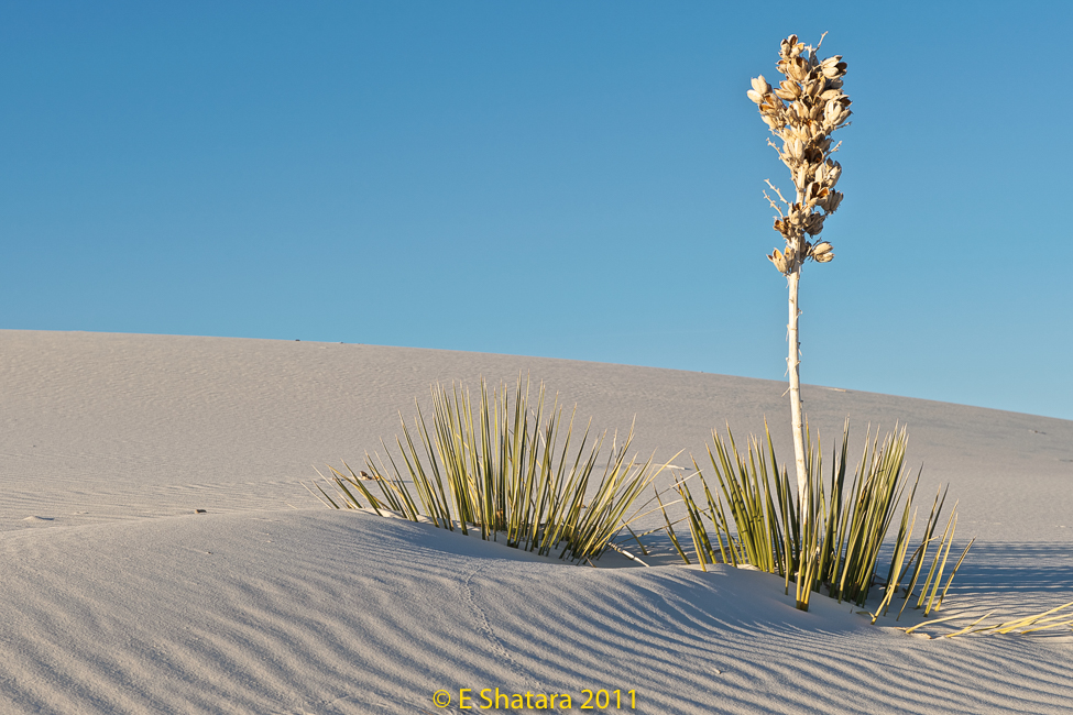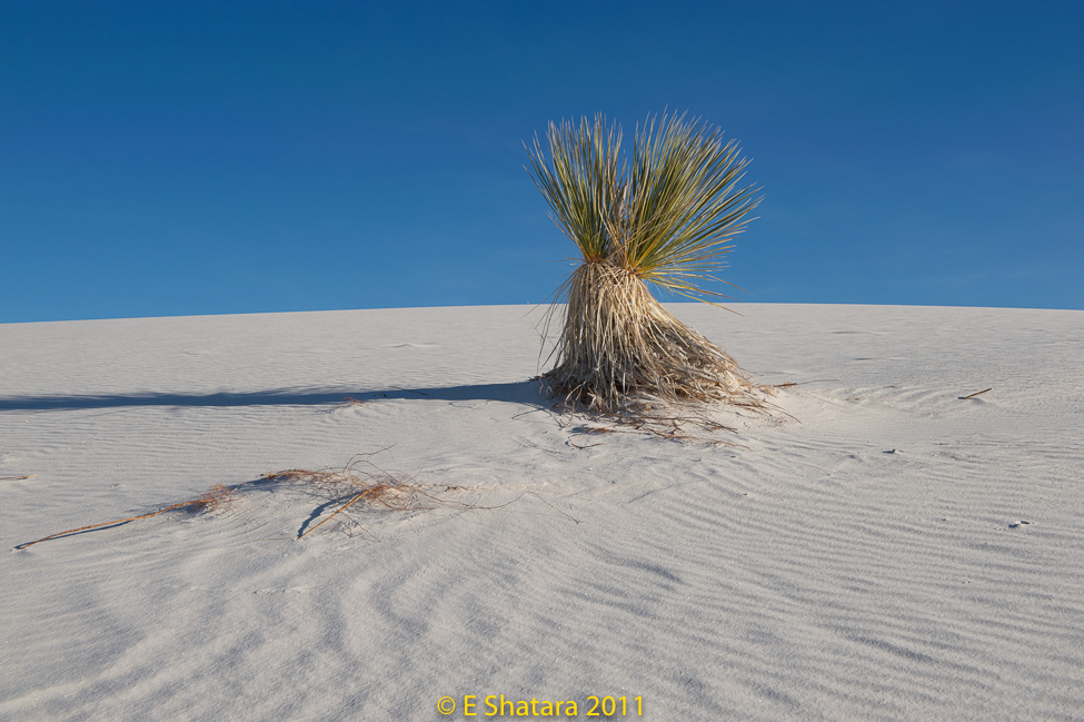 The winds constantly change the mounds of gypsum and these plants are constantly struggling to stay on top of the sand.
