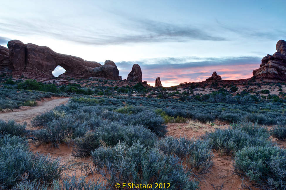Dawn at the Windows section of the park. The South Window is shown in this shot.