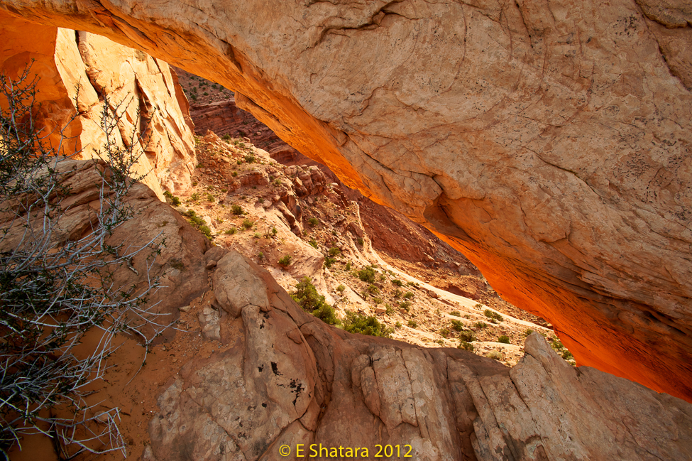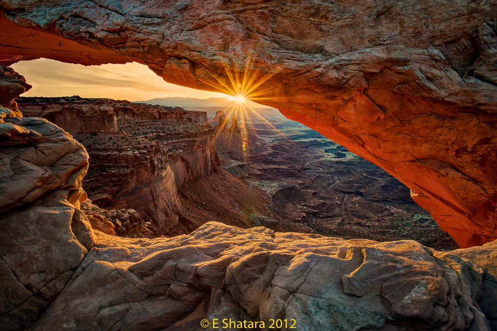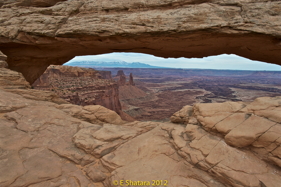 This is probably the most photographed arch in the world. It's a beautiful shot of the canyon below and the mountains in the distance. This shot was taken on our reconnaissance trek to the arch in preparation for making the trip the following morning in the dark.