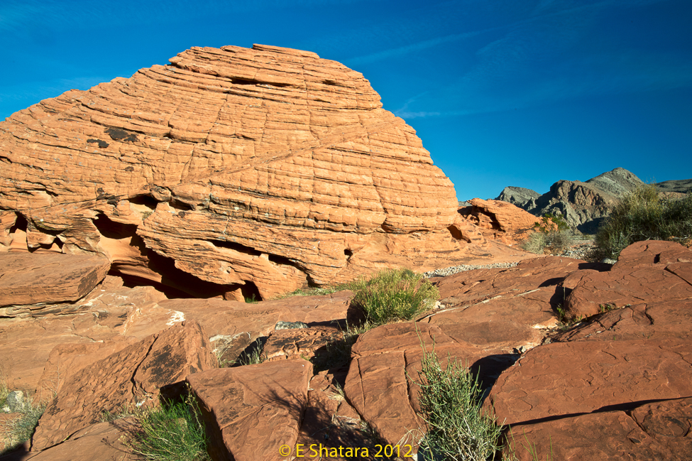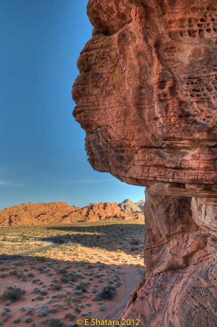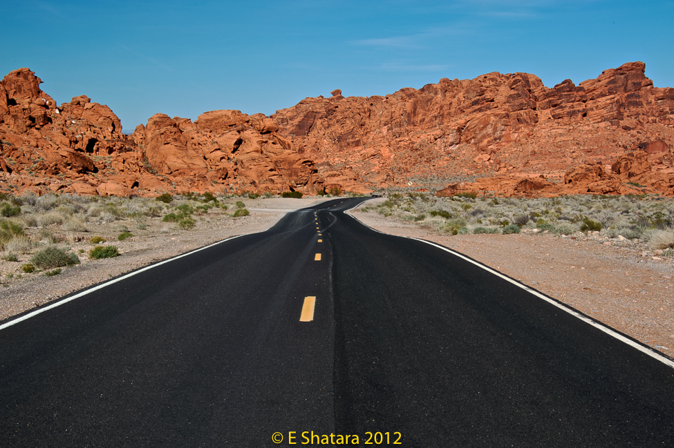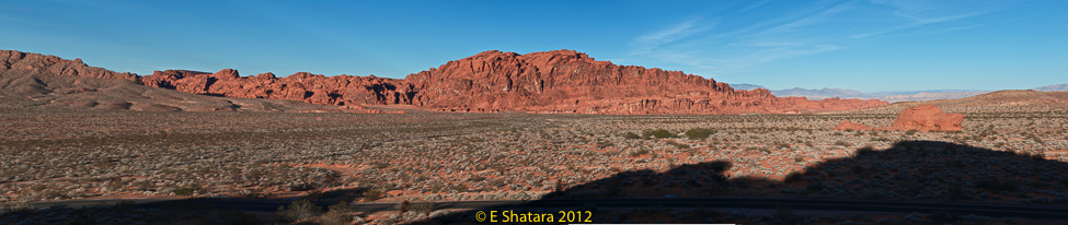 I arrived in Las Vegas at noon the day before picking up my friend. So I decided to drive out to Valley of Fire state park and check it out. The park is located 15 miles east of I-15. Most of the drive in rather uninteresting until you reach the park and the road descends into a valley lined with bright red rocks.