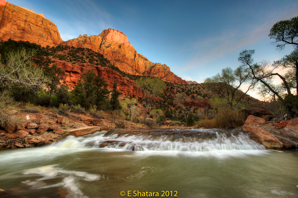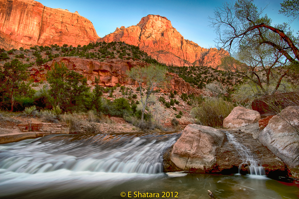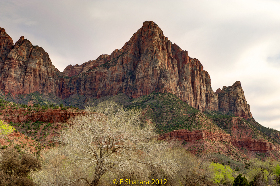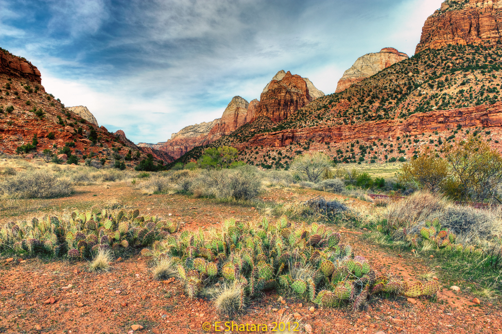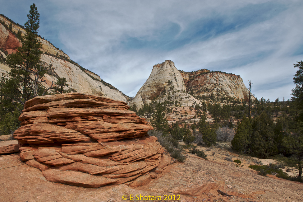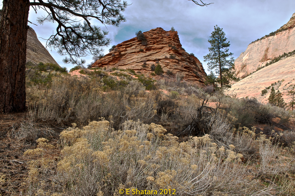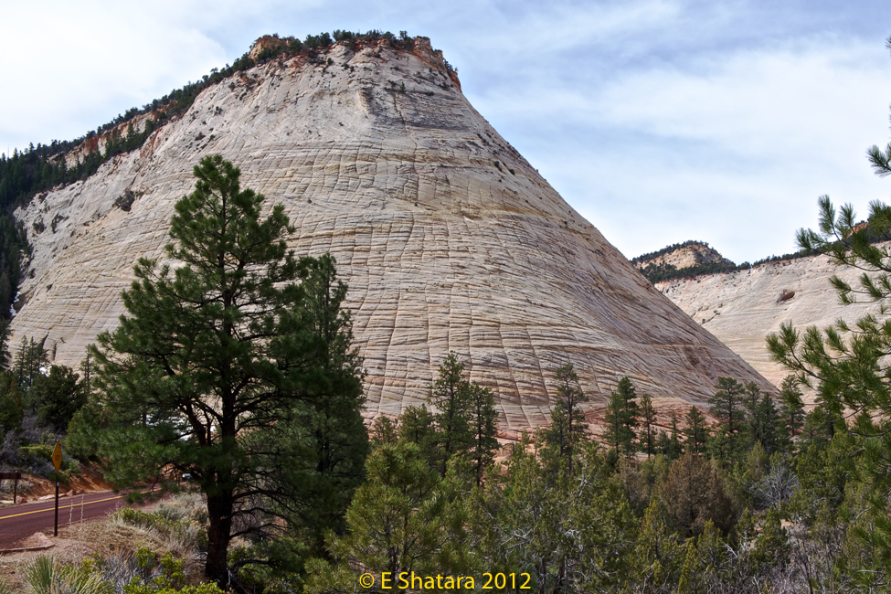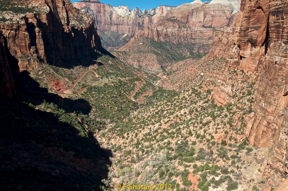 The switch-backs on the Mt Carmel road leading into Zion Canyon as seen from the Canyon Overlook.