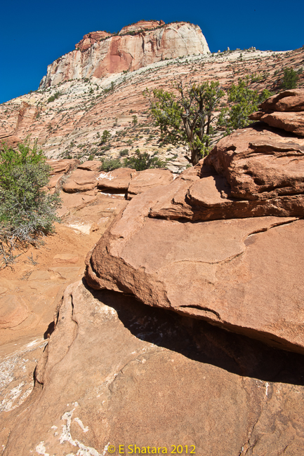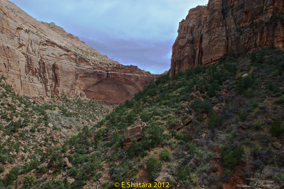 The Canyon Overlook is above the giant arch seen here from the Mt Carmel switch-backs.