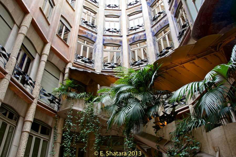 At the time, it was controversial because of the undulating stone facade and twisting wrought iron balconies. It also feature the atrium pictured here.