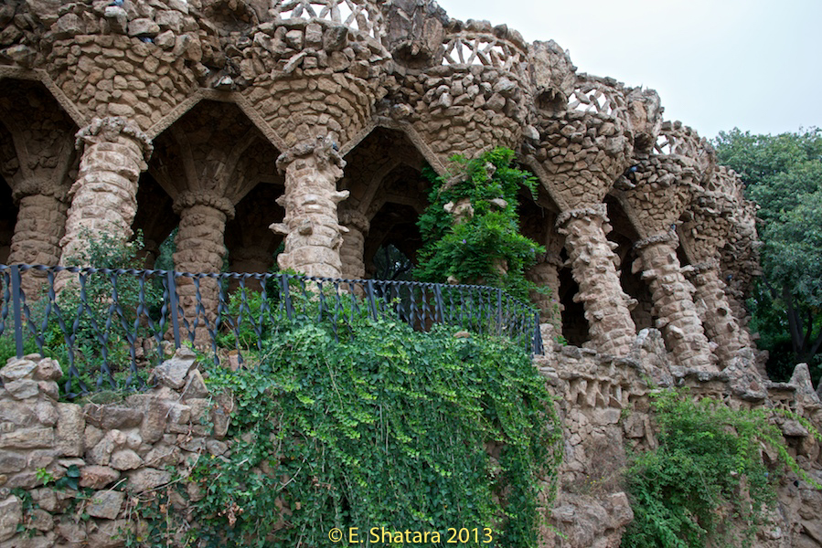 Bird nests built by Gaudí in the terrace walls. The walls imitate the trees planted on them.