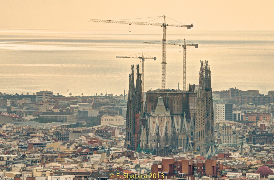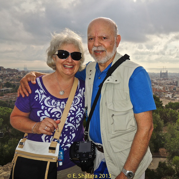 Tam and I at Park Guell with the Sagrada Familia in the distance.