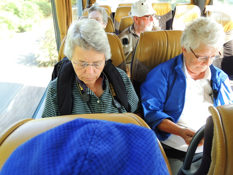 Georgie (left) along with Liz (behind Georgie) taking cat naps while Jane and Dick consult their maps.