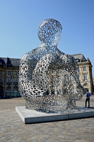 A sculpture of a woman made up of welded letters and open inside inviting people to climb in. The placque at the base did not expand on why the sculpture was there or what it might commemorate.