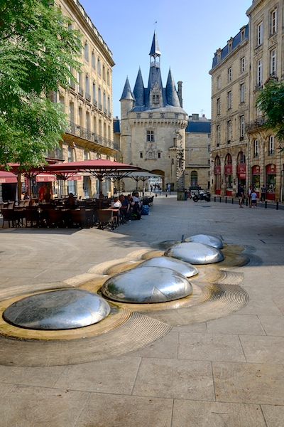 Artwork in the square. These drops have a fine film of water flowing over them.