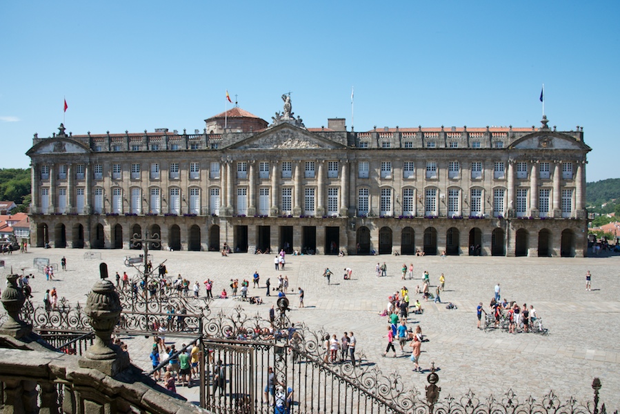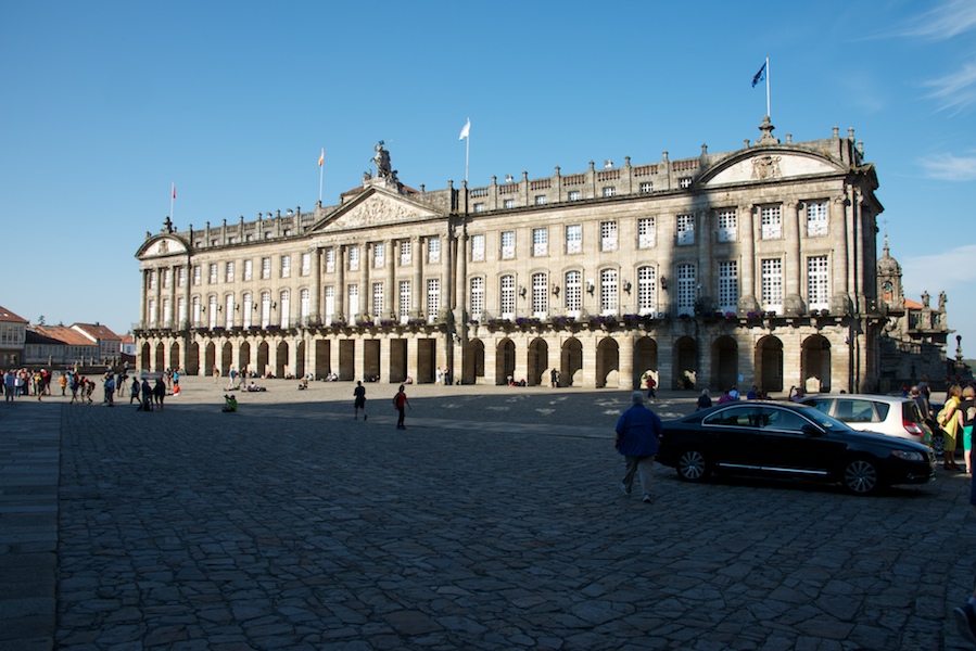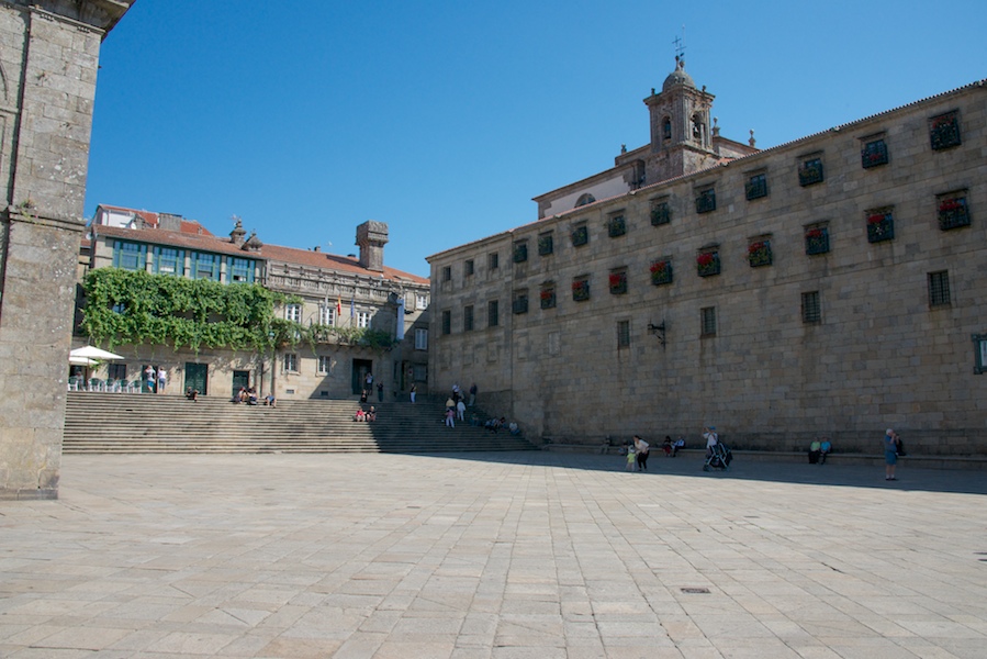 The Palacio de Rajoy. and the Plaza del Obradoiro as seen from the steps of the cathedral.