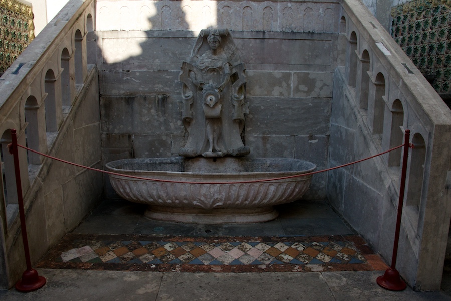 The Sintra Palace goes back to the times of Islamic domination, when Sintra had two different castles. One of them, located on top of a hill overlooking Sintra is the so-called Castle of the Moors (Castelo dos Mouros), which is now a romantic ruin. The other,shown above, was the residence of the Moorish rulers of the region.