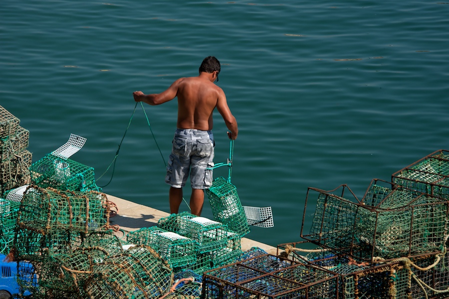 Loading the pots onto a boat below