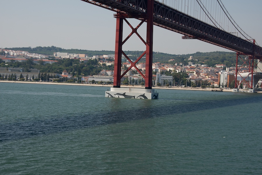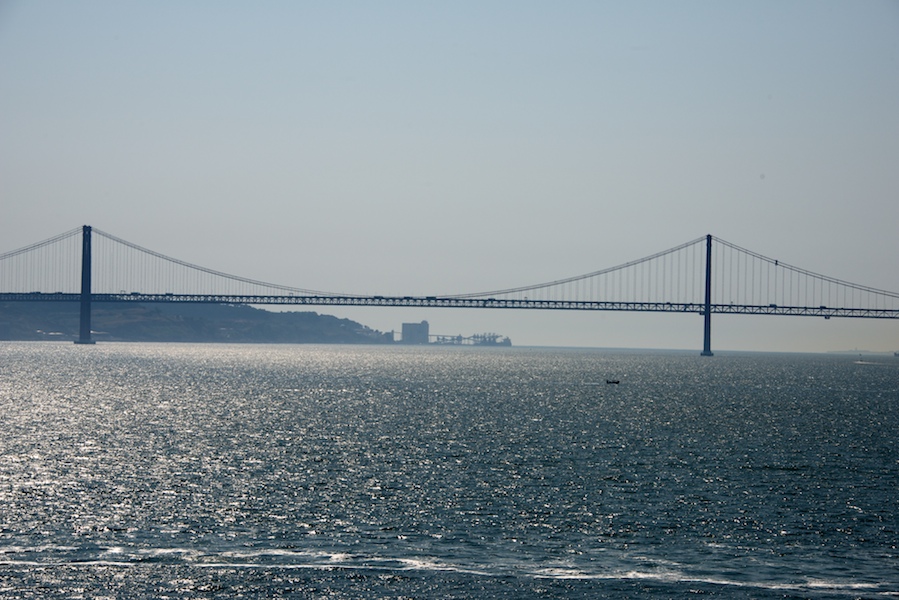 This bridge spanning Lisbon Harbor was designed by the same folks who designed the Bay Bridge in San Francisco
