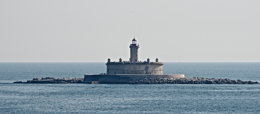A lighthouse at the entrance to Lisbon Harbor