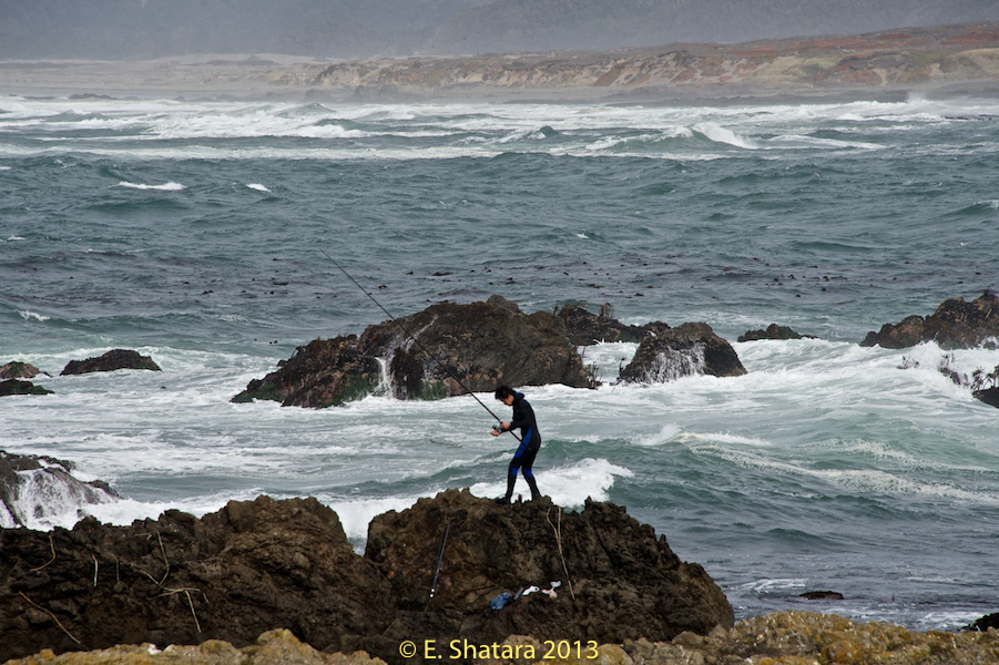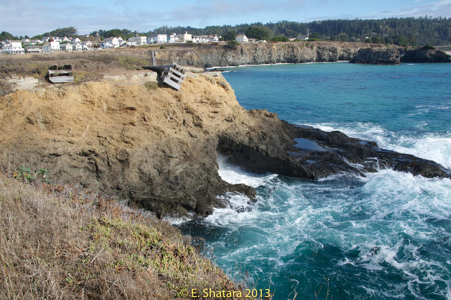 On Sunday we went to MacKerricher State Park which was just north of Fort Bragg, about 13 miles from Mendocino. The beach is famous for it abundance of sea glass. When we got ther the wind was blowing about 25 miles per hour and the sea and sand spray made hunting for glass a lost cause. Even the sea gulls were grounded.