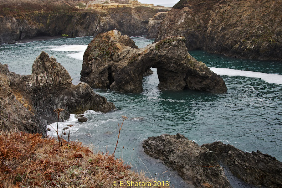 Along with sea stacks, these tunnels are also found. We spotted about a half dozen of them on our hike around the headlands.