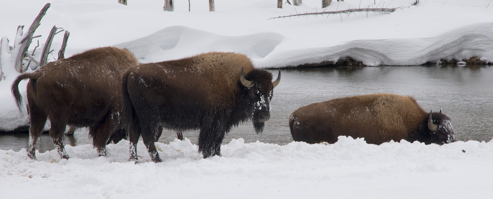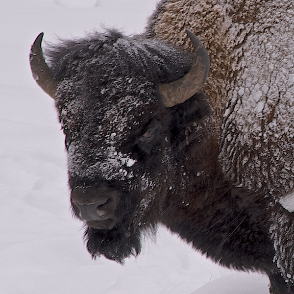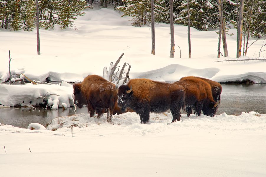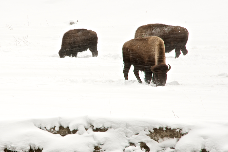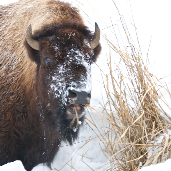 Bison use their face to move snow out of the way allowing access to the grass below.