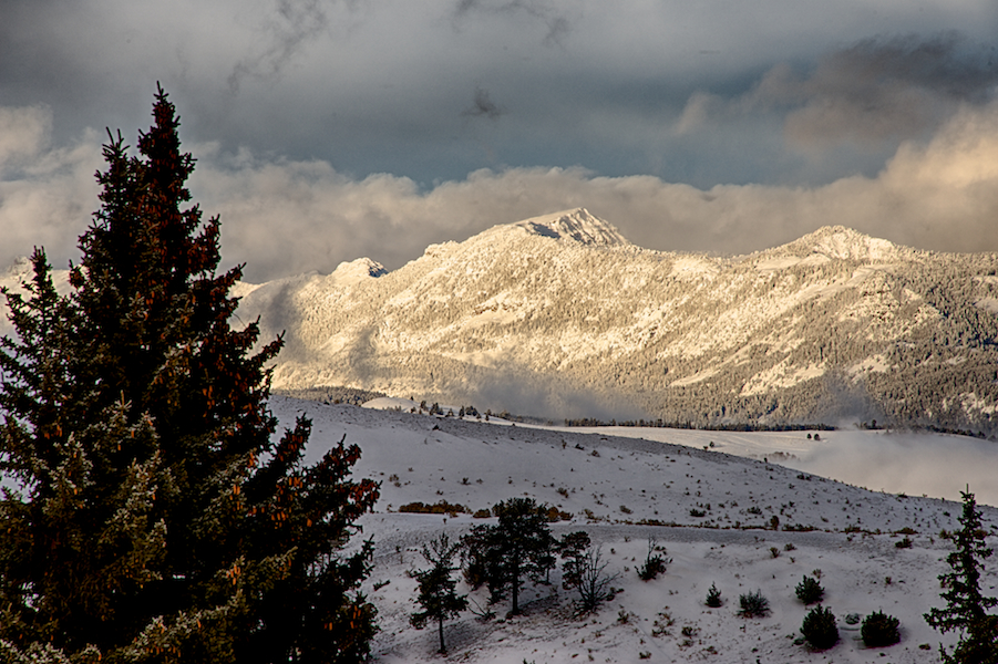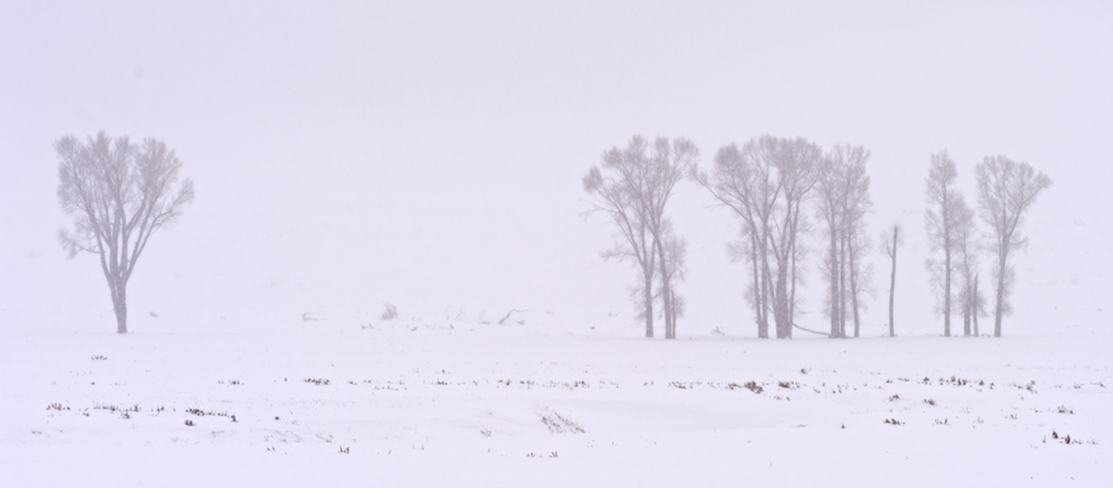 Trees silhouetted in a Snow storm in the Lamar valley.