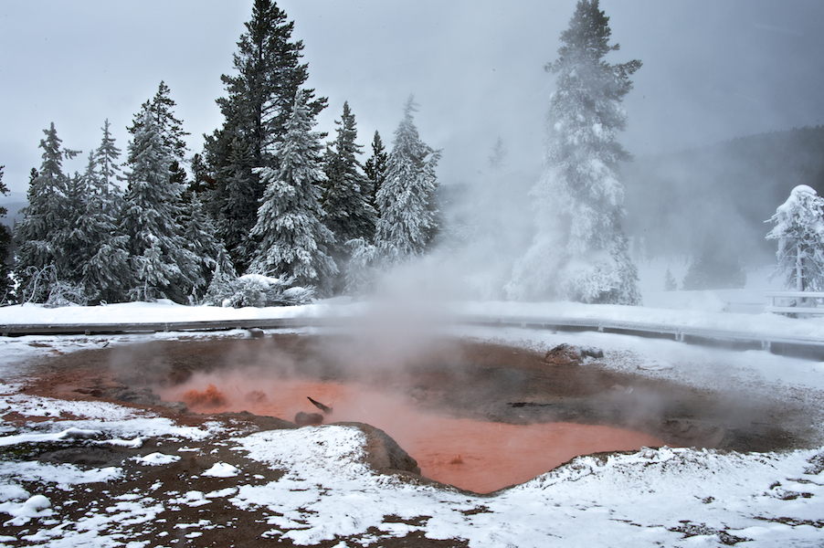 Beryl Spriing - Steaming hot water proving steam to coat the nearby trees with ice