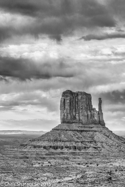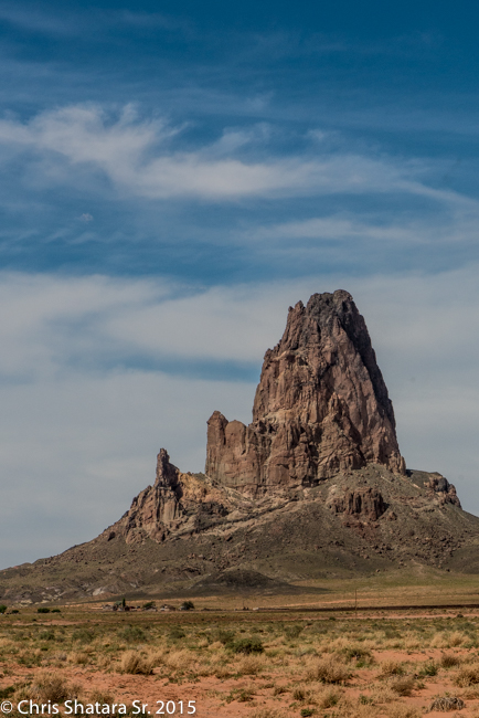 Agathia Peak, rising 1500 feet above the ground, looks like a guard at the entrance to Monument Valley