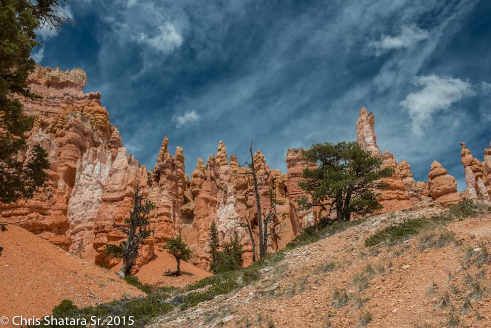 These Hoodoos are the result of water getting into the rocks, freezing and breaking off pieces of the rock. These spires are constantly changing.