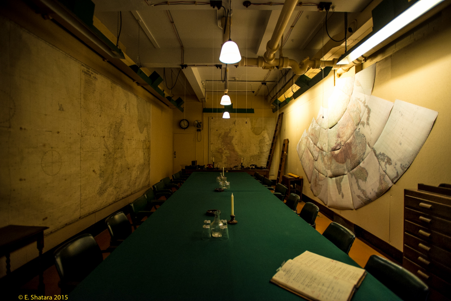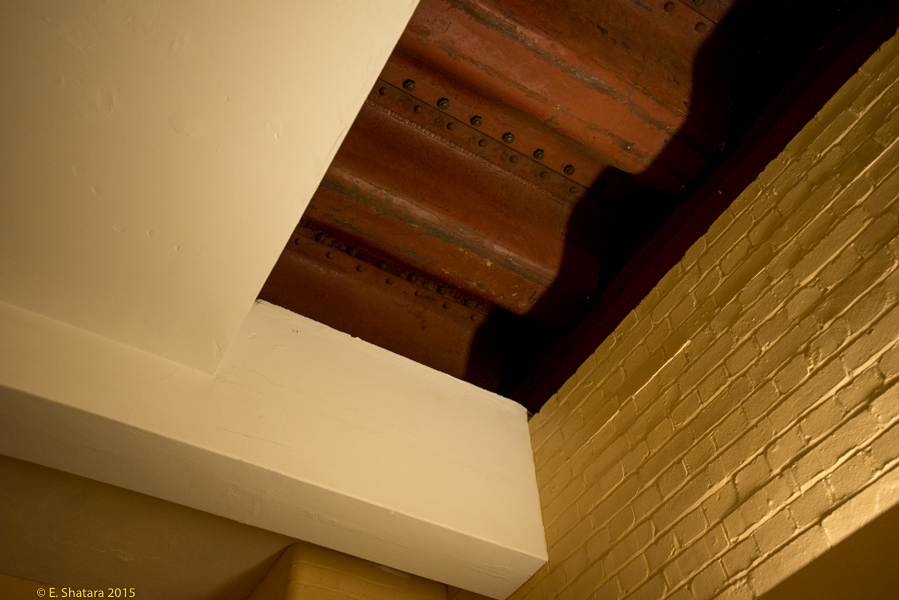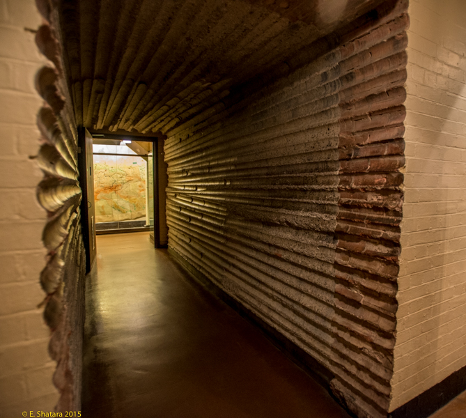 The ceiling is cut away here to show you the steel reinforcement that was used along with concrete to construct the facility.