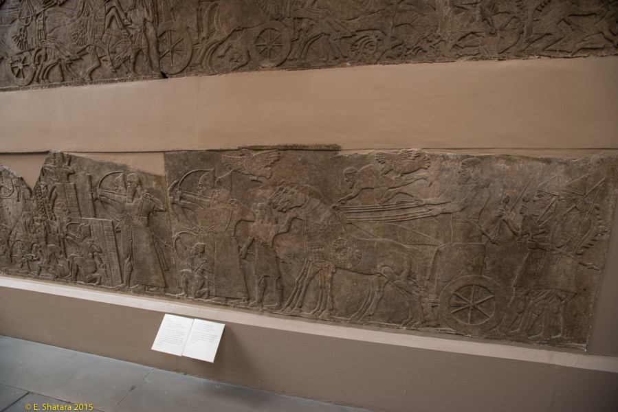 Behind the Rosetta Stone was an exhibition of wall sculptures from the palace of King Tiglath-Pileser III an Assyrian king who rueigned from 744-727 BC.