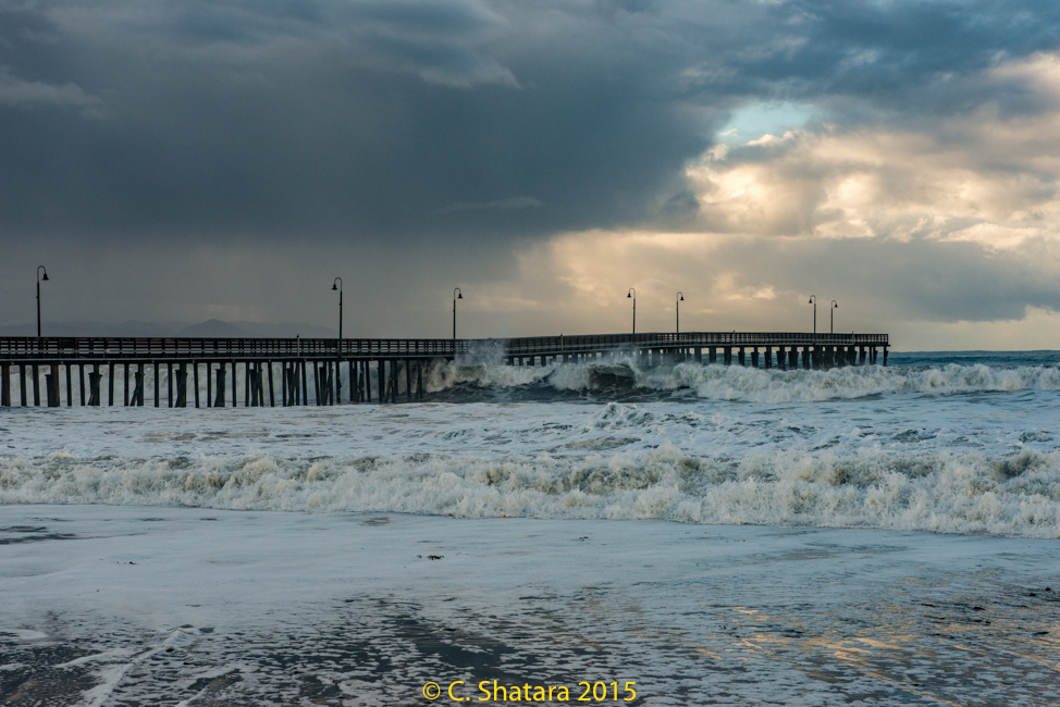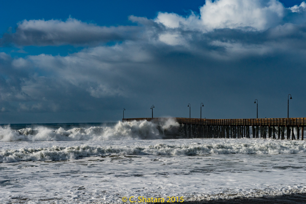 Storm-Whipped waves slapping the bottom of the Cayucos Pier