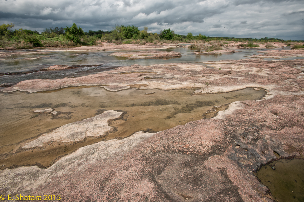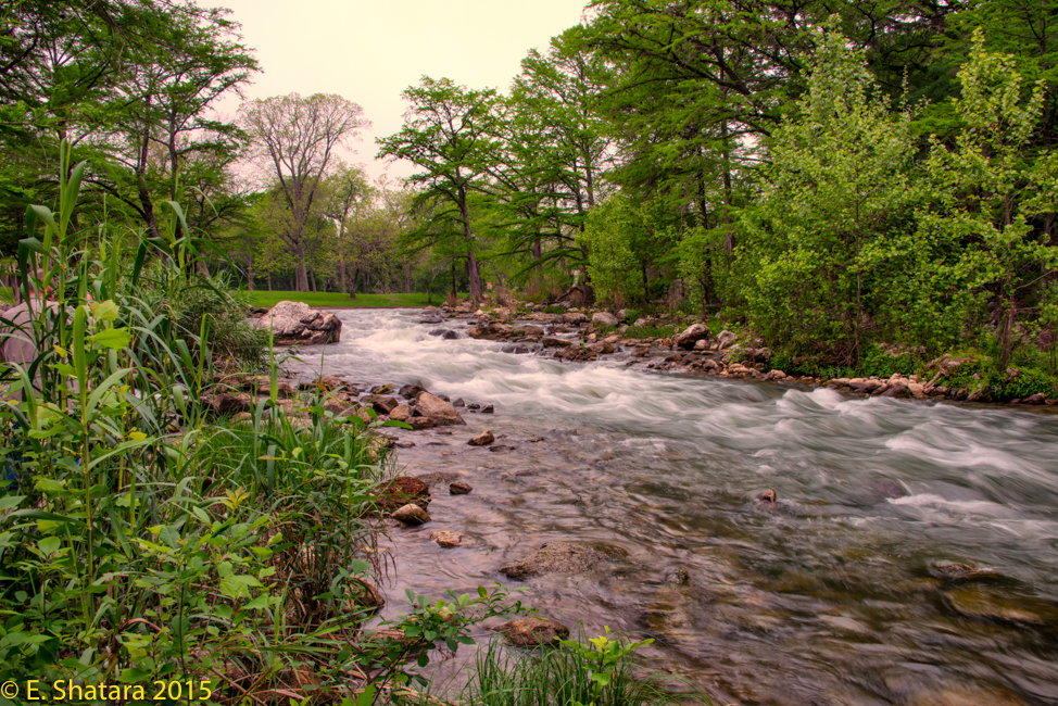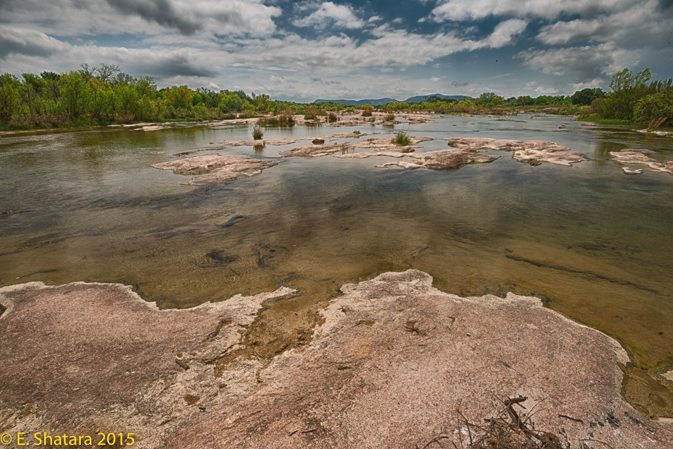Near Kingsland, Texas on state road 3404. These are granite slabs carved by the flowing water.