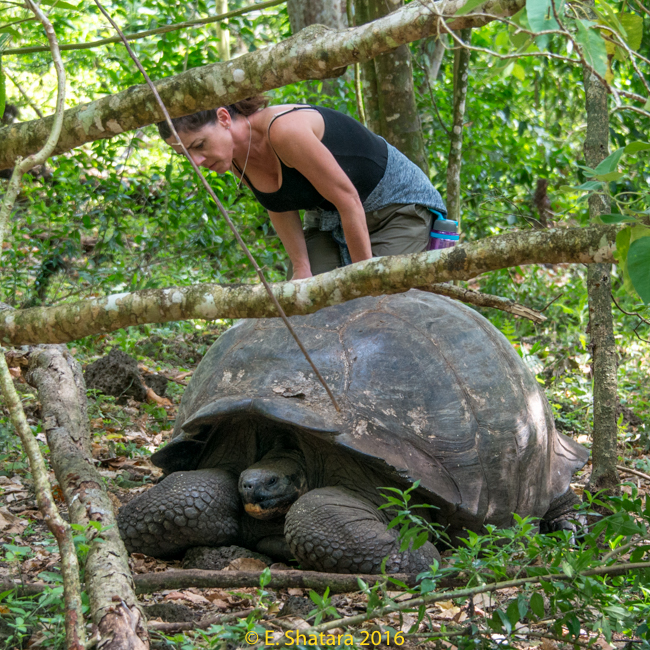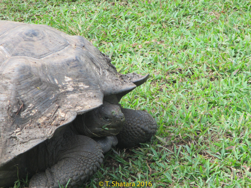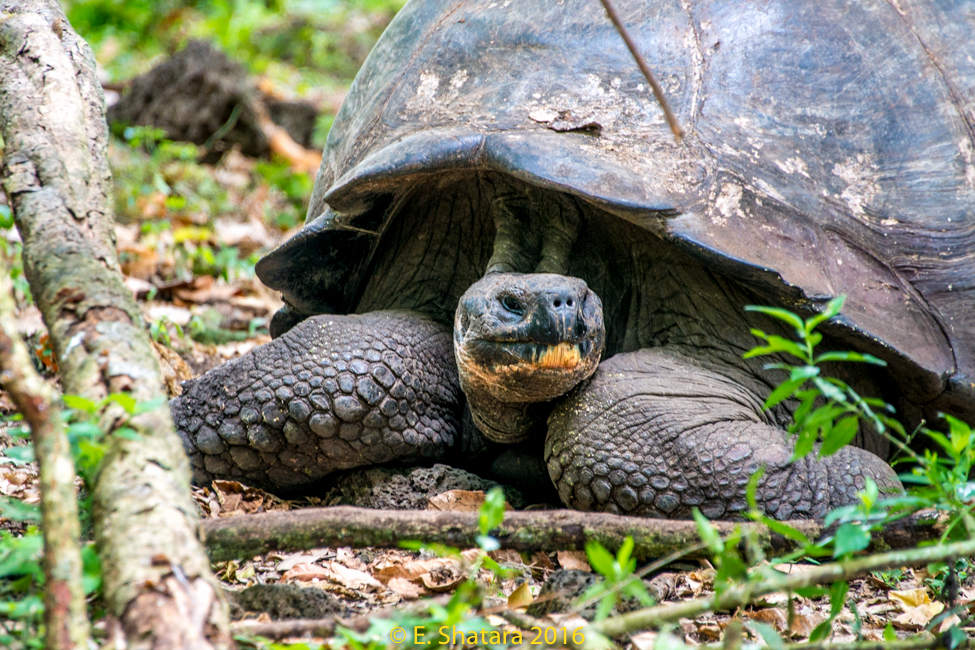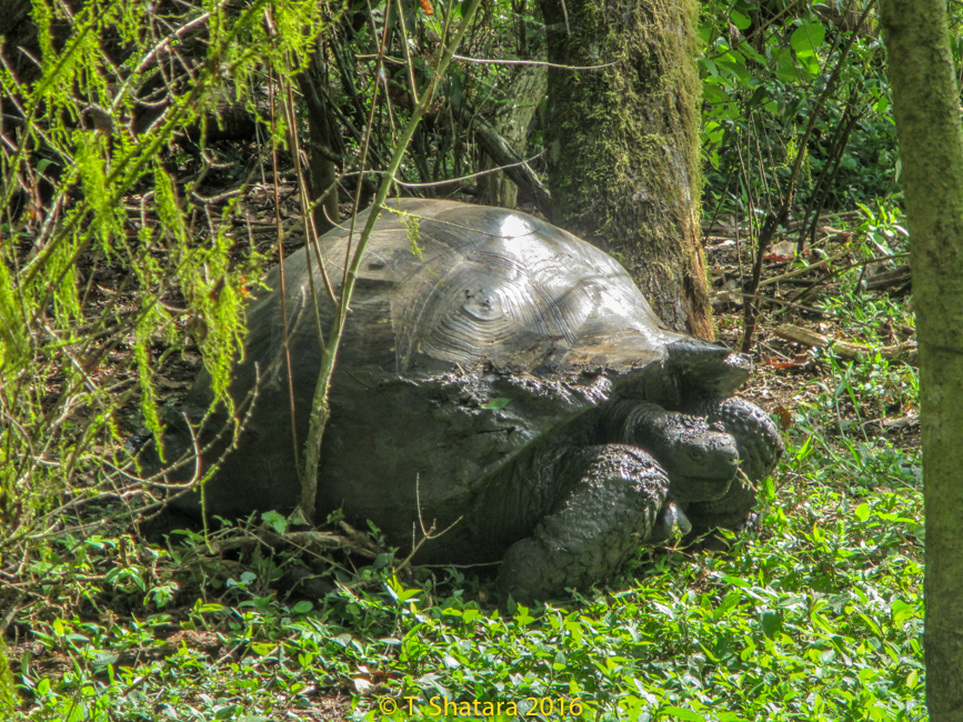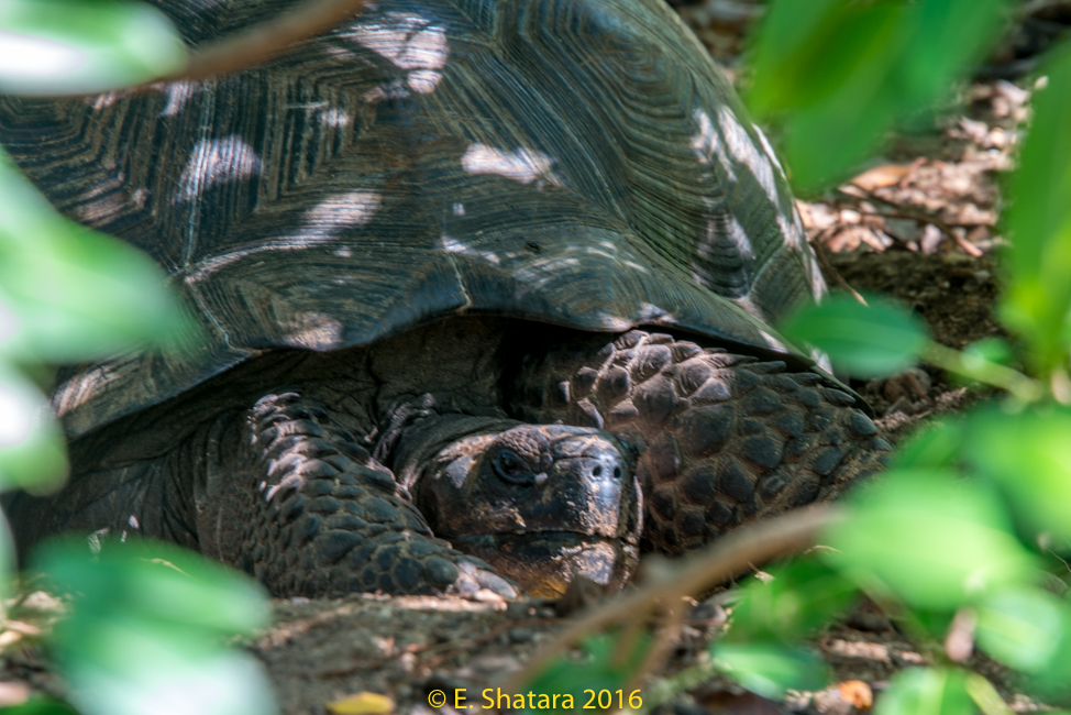 While photographing they land iguanas, we came across this female tortoise on her nest in the underbrush.