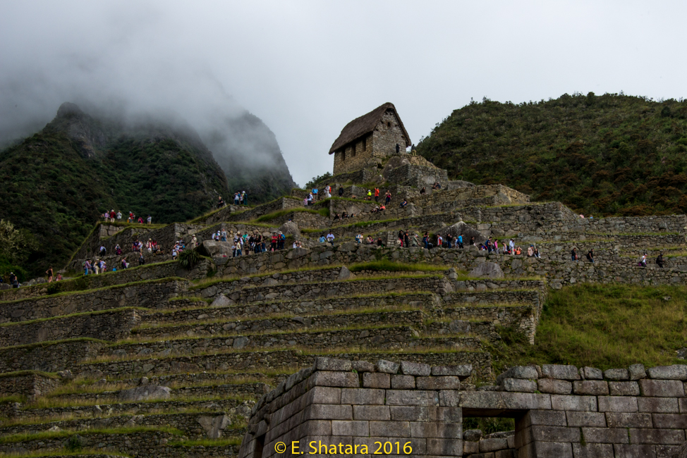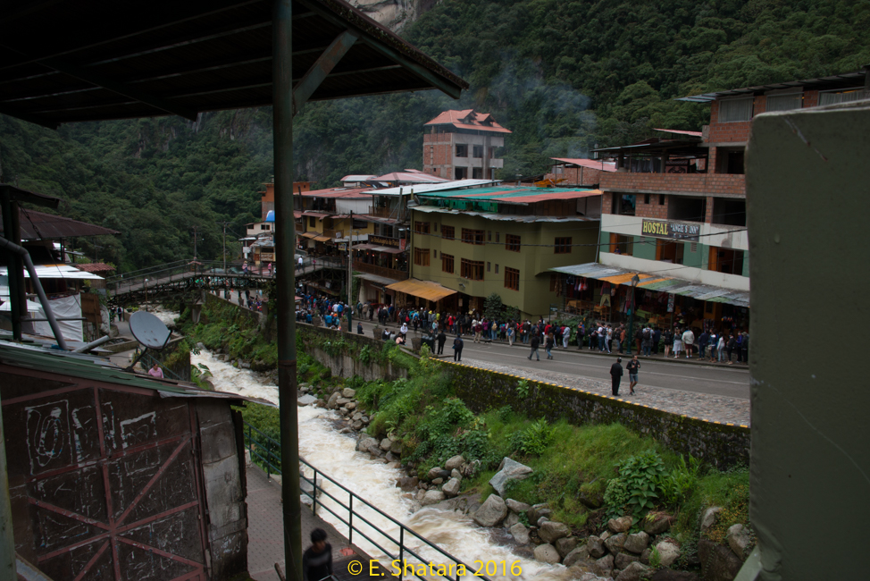 The crowds waiting to catch the bus up to Machu Picchu. Our guide said he's never seen the line this long. Best advice for photographing the site.....stay at the hotel at the site. Best times to shoot are first thing in the morning and just before closing when it less crowded. I would spend two nights there to lessen the impact of bad weather.