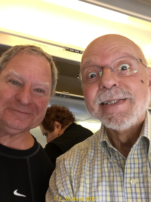 My brother-in-law Tom and I on the flight to Reykjavik, Iceland.