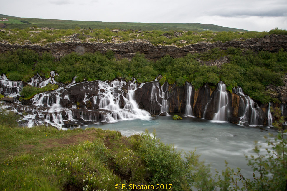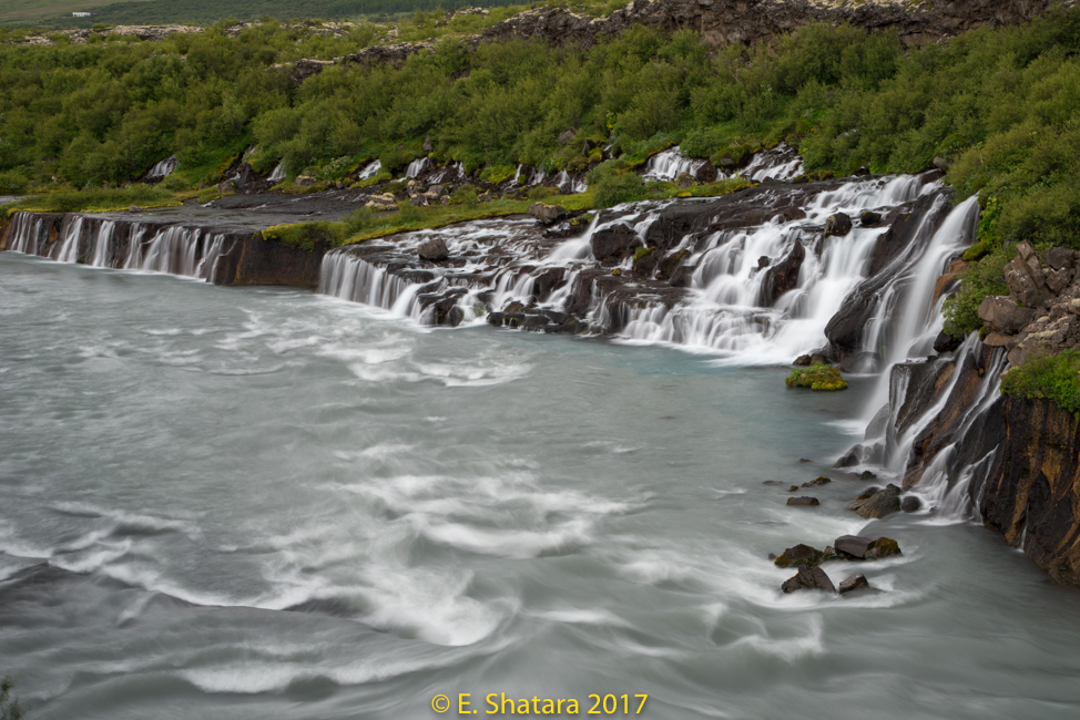 Hraunfossar Falls- a series of waterfalls formed by rivulets streaming over a distance of about 1200 feet.