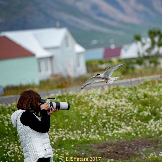 An Arctic Tern diving at Serena because she was getting too close to the Tern's nest.