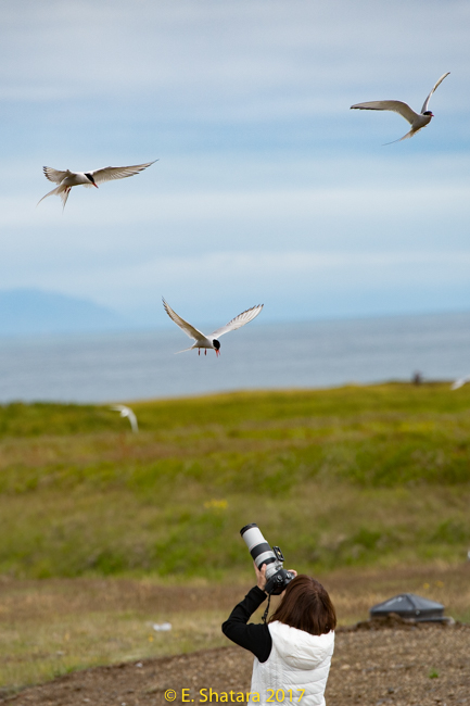 Arctic Terns diving at Serena because she was getting too close to their nesting area.