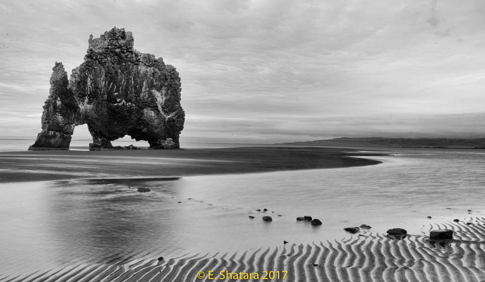 Hvítserkur is a 50 foot high rock rising from the Gulf of Húnaflói in northern Iceland. It resembles a drinking dinosaur. During low tide you can actually walk it. This shot was taken around 11:00 at night. Again with poor lighting.