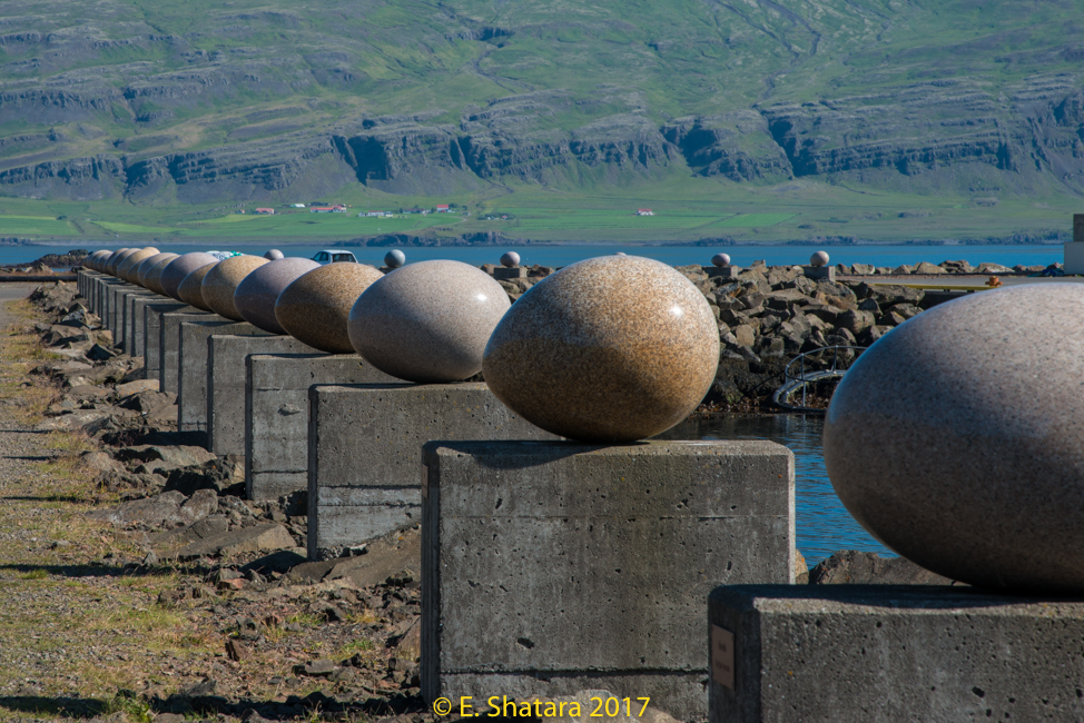 These granite eggs by artist Sigurður Guðmundsson are to scale and honor the 34 species of bird that nest in the eastern region of Iceland.