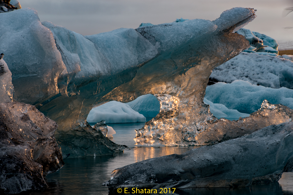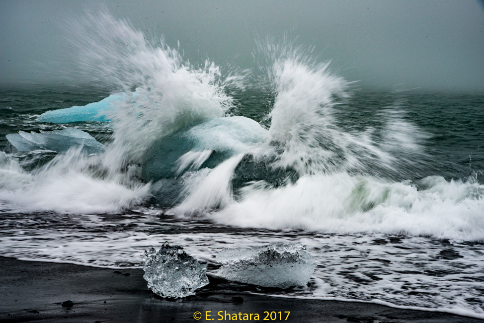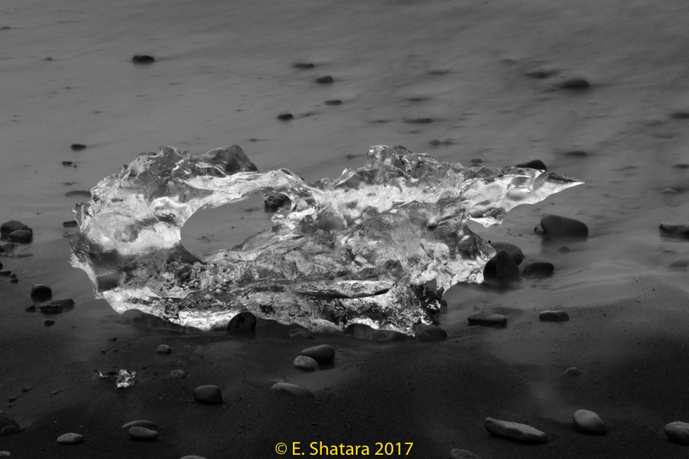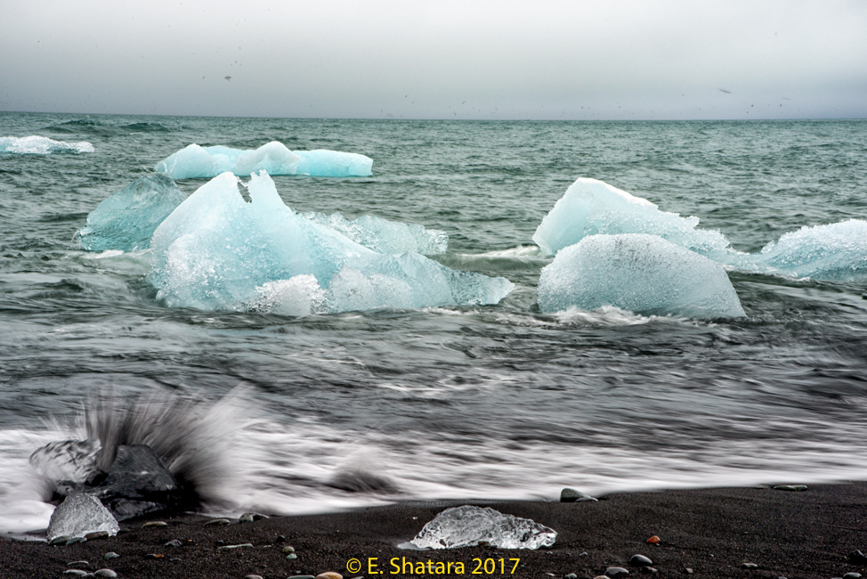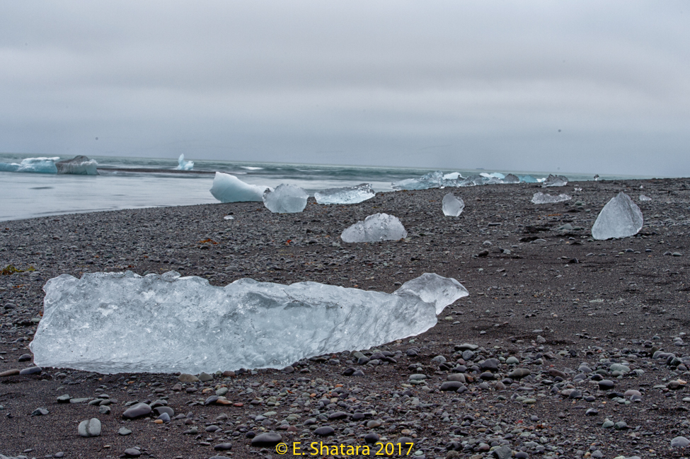 Eventually many of the icebergs are washed ashore looking like crystal sculptures.