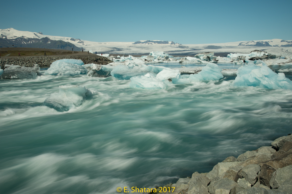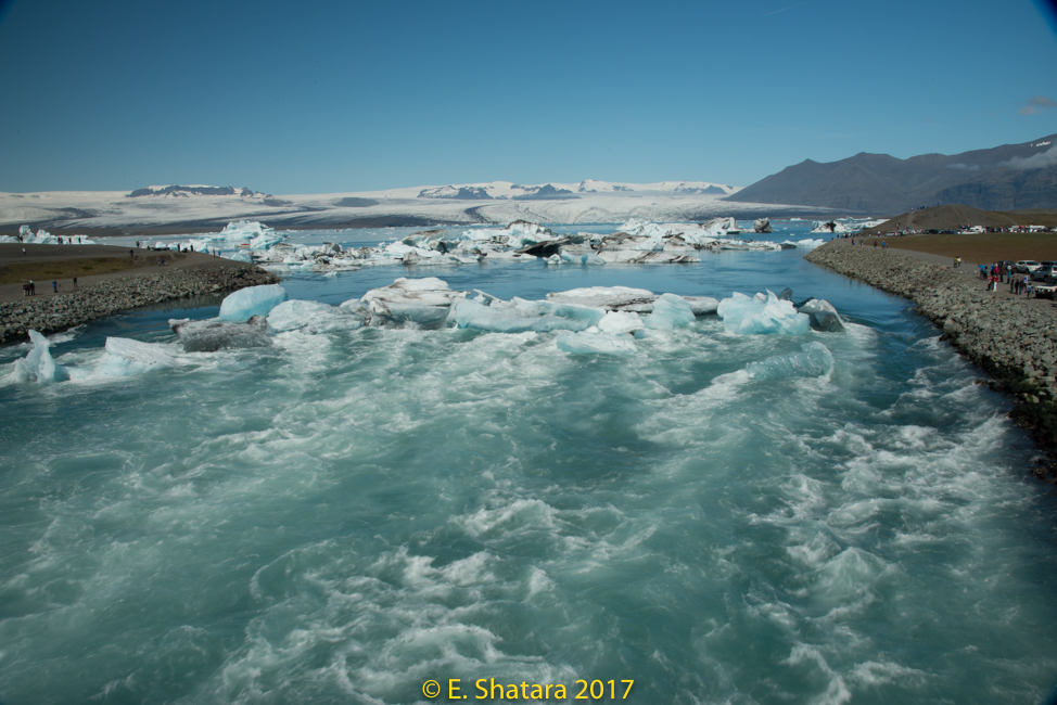 Jökulsárlon Glacial Lagoon - The icebergs flow out to sea on the receding tide and clog up the river.