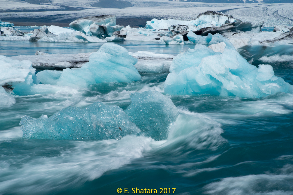 Jökulsárlon Glacial Lagoon - Icebergs breakoff from the Glacier due to the rising and falling of the ocean tide.