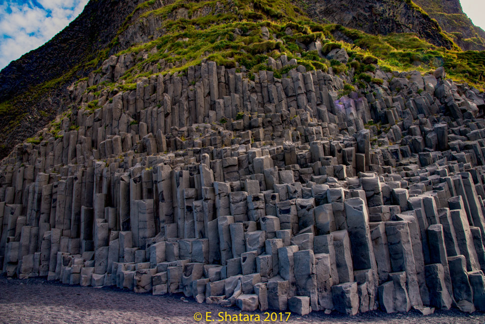 Basalt columns on the Black Sand Beach near Vik, Iceland.