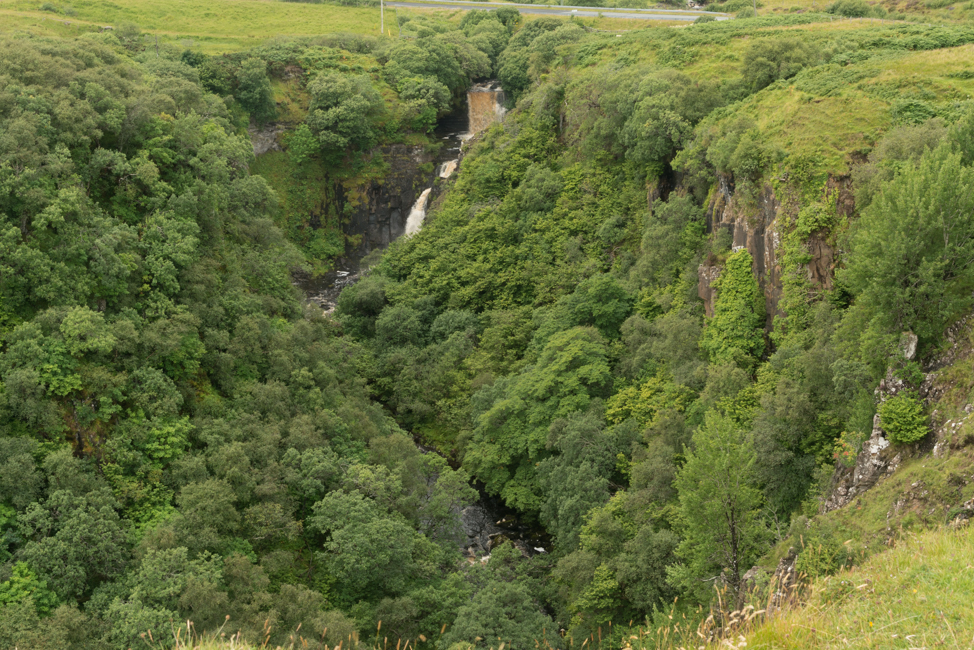 We were told of waterfalls dropping into the sea north of the Storr. Se we kept our eyes open for any turnout which might lead us to one