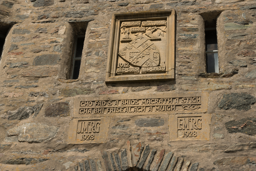 Above the door is a Gaelic inscription which in translation reads: "As long as there is a Macrae inside, there will never be a Fraser outside", referring to a bond of kinship between the two clans.