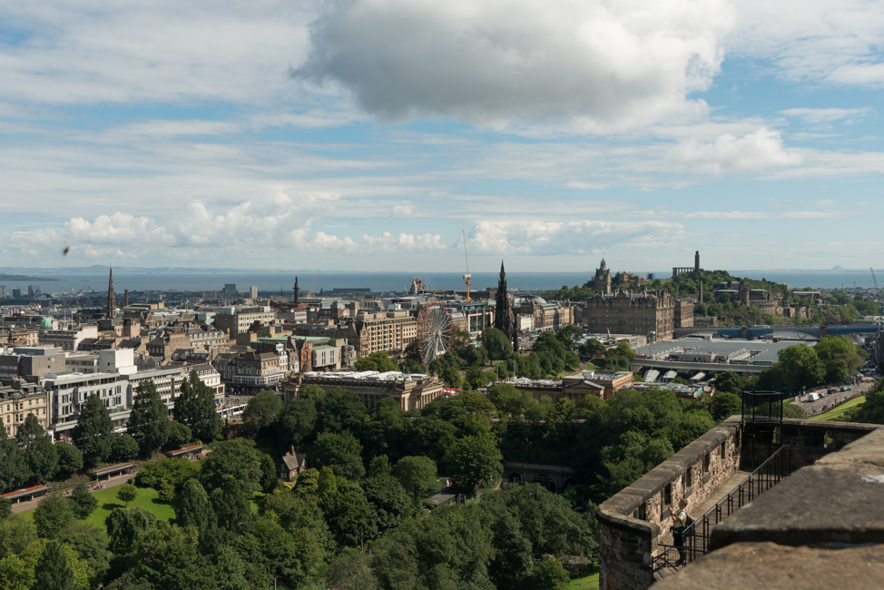 The town of Edinburgh as seen from the Castle. Princess Gardens is in the foreground
