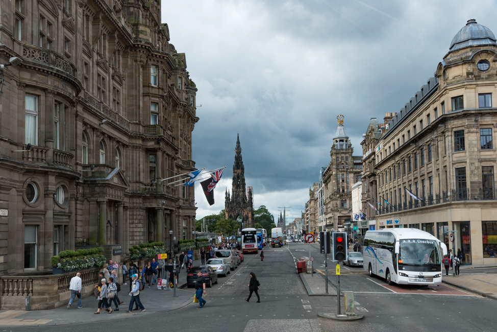 Looking down Princess Street with our hotel, The Balmmoral, on the left.