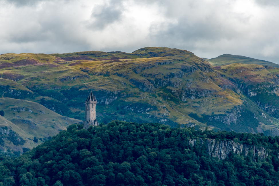 The National Wallace Monument stands overlooking Stirling , commemorating Sir William Wallace, a 13th-century Scottish hero.