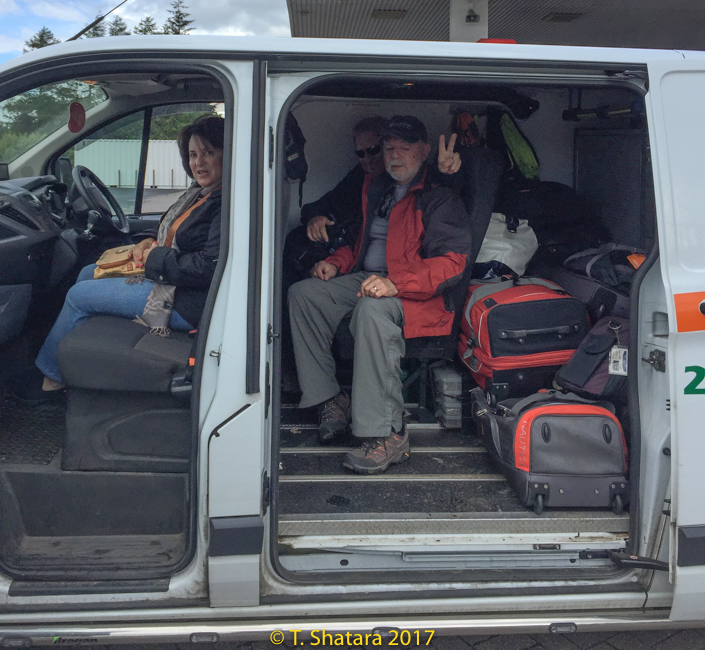 On our way to Oban we punctured a tire requiring us to be "retrieved". All of us piled in this van with all our luggage to the hotel.
