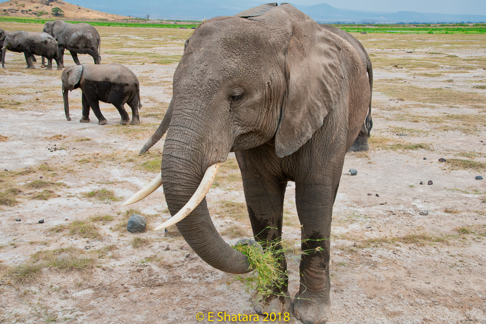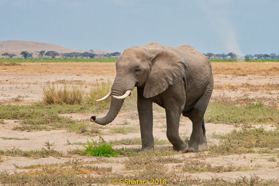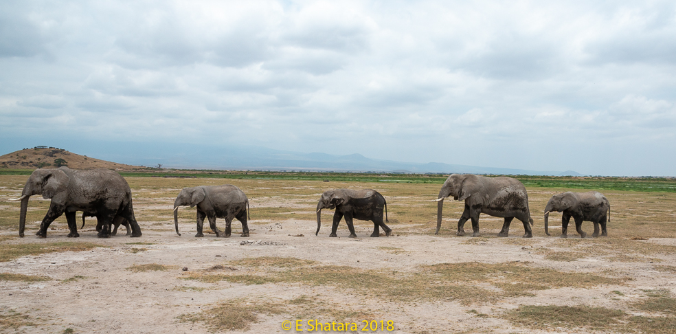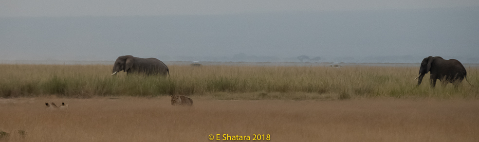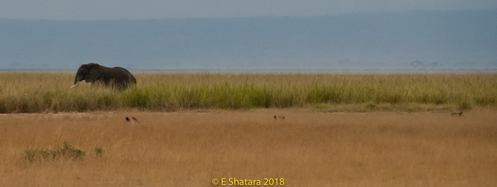 After the Serengeti we flew back to Arusha then crossed the border into Kenya and on to Amboseli National Park. The road was quite rough and in places looked like a rocky stream bed. The countryside was covered with bushes and trees it reminded me of Botswana.