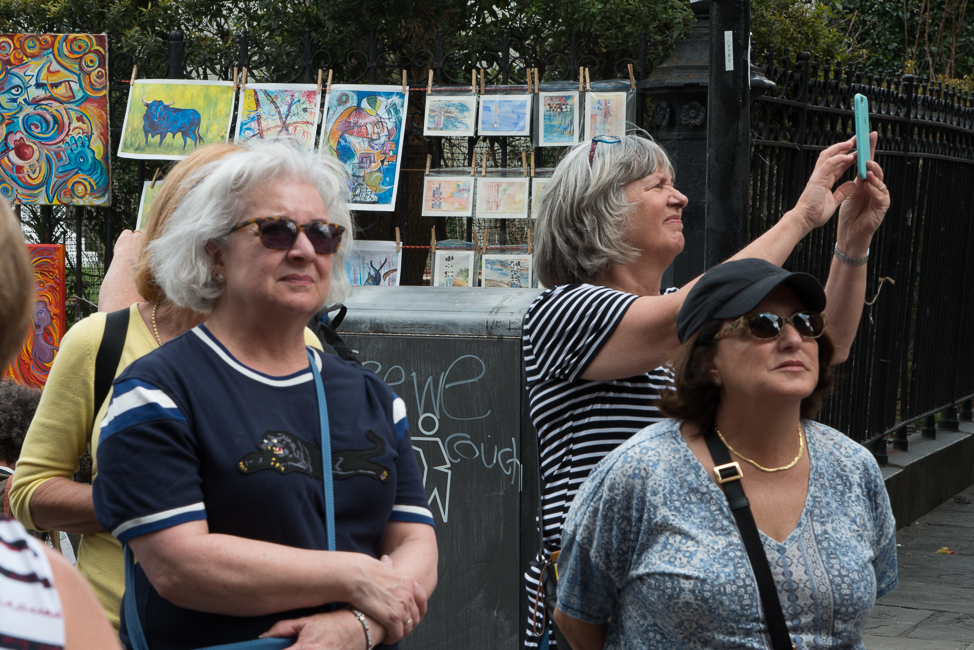 Tam, Carole and Janet watching some of the performers at Jackson Square