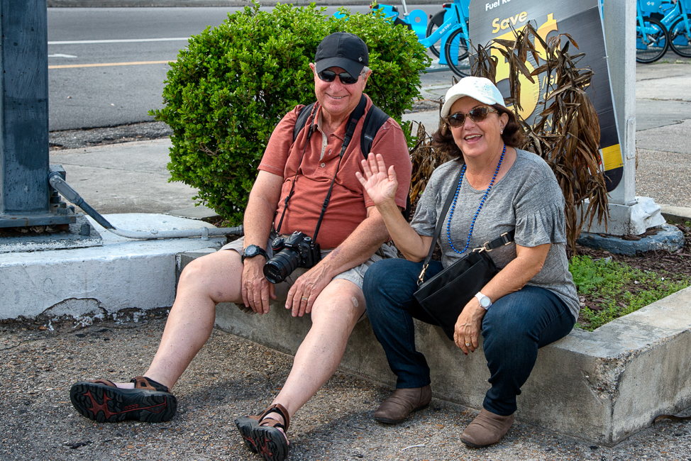 Janet and Tom waiting for the Hop-On/Hop-Off bus